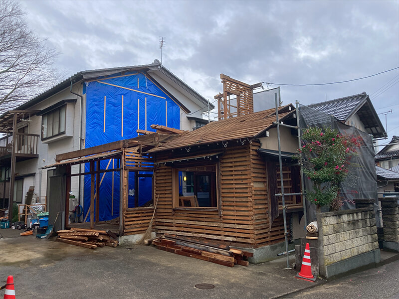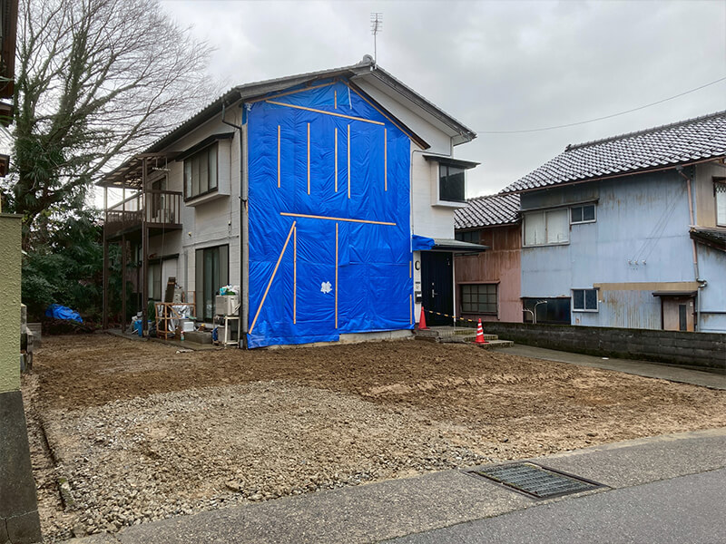 老朽化のため解体したいとのことでしたが、ご両親から受け継いだ思い出深い建物だったと伺って、細心の注意を払っての施工となりました。施工の翌年にはわざわざ年賀状を下さり、私たちにとって忘れられない案件の一つとなりました。